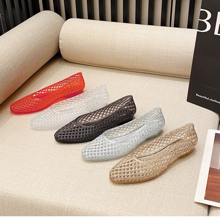 新しい韓国ゼリーシューズ浅い口シングルシューズクリスタル PVC アウトドアカジュアルポインテッドトゥサンダルスリッポンイン