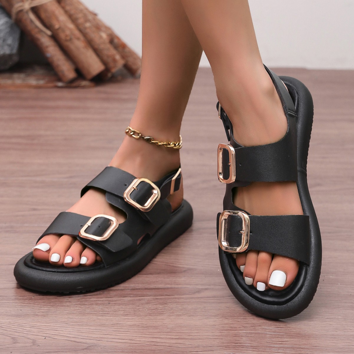 2025年新作 欧米風 夏用 レディース サンダル バックル付き カジュアル ビーチ 海辺 マッサージ 快適 クロスボーダー 大きいサイズ フラットシューズ