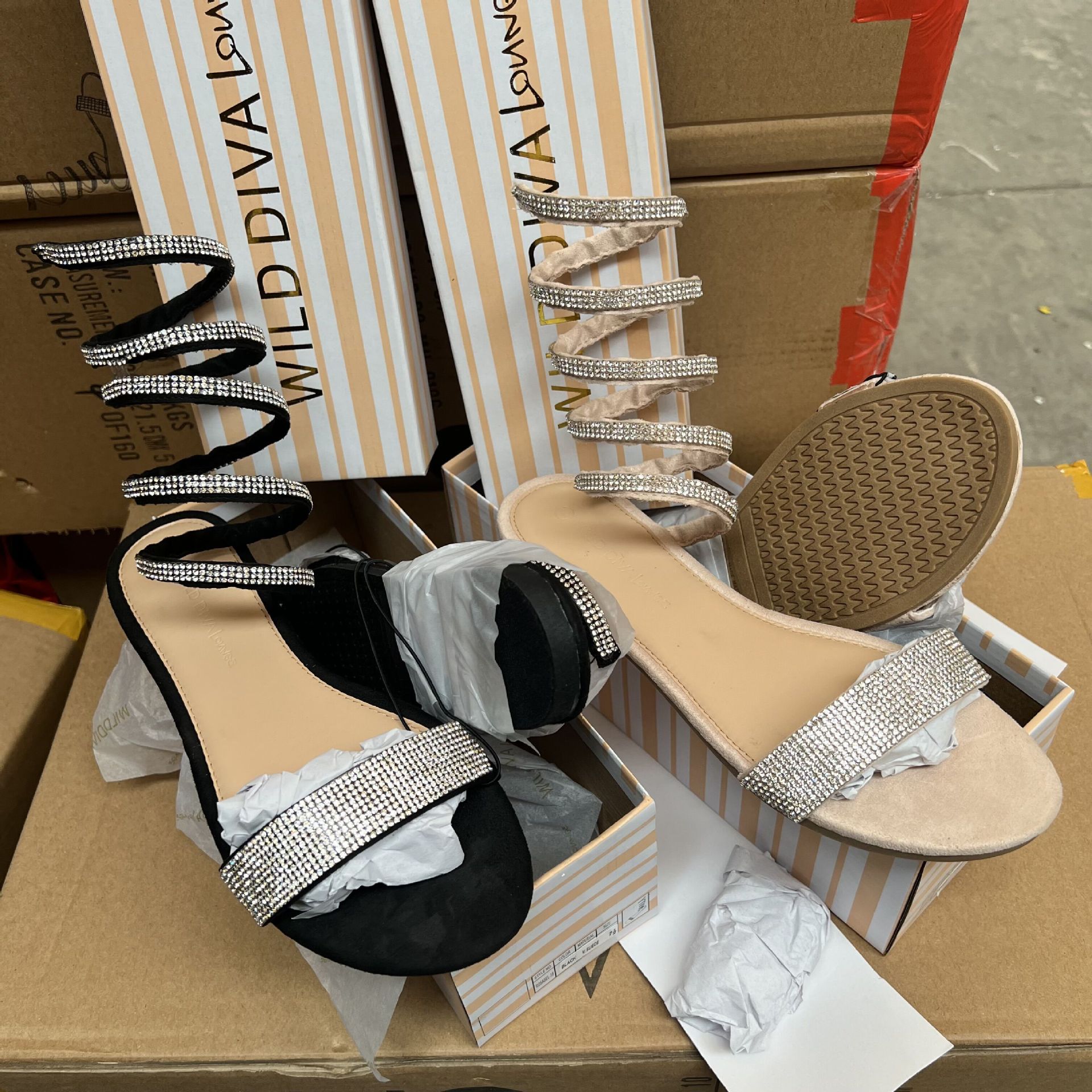 メーカーの国境を越えたメーカーが対外貿易ガラスの水晶と坂とハイヒールの花の口のドリルのサンダルの女性靴を販売しています。