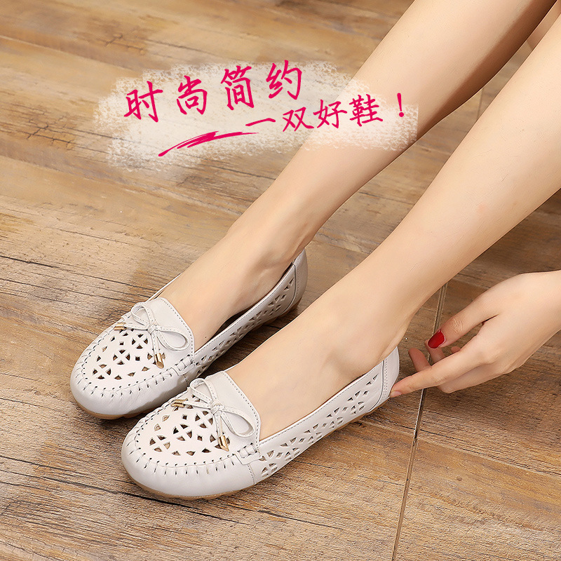 通気性のある平底マザーサンダル女性の第一層牛革中空ウェッジ滑り止め特大サイズの革靴
