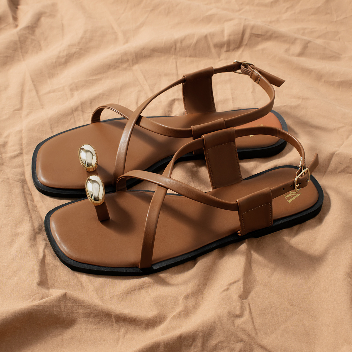 ZA2025新款夏季绝美夹趾凉鞋女鞋网红同款葡萄金属扣夹脚罗马鞋