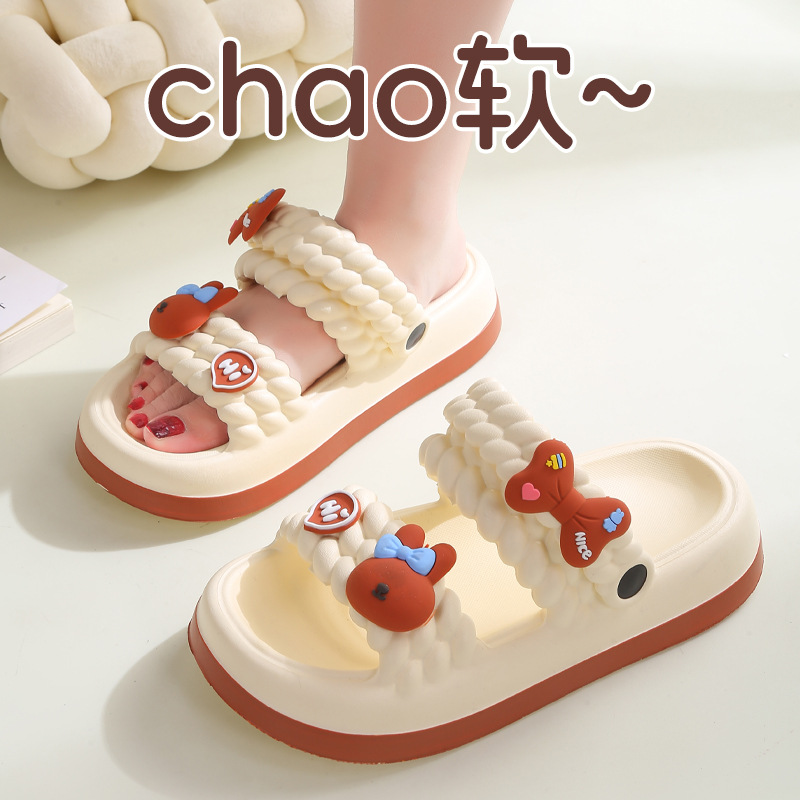 女性の夏のアウトドアウェアに最適なスリッパ、かわいい2024新しい屋内ホームバスルーム滑り止め厚底サンダル