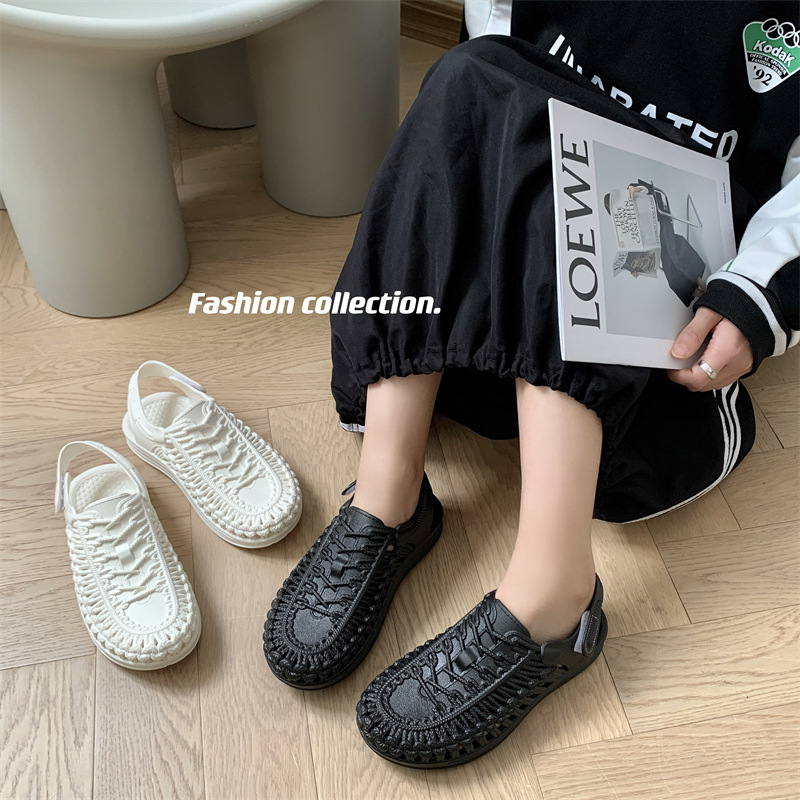 外国貿易2023夏の新型レトロな女性サンダルの線の穴の靴の大きいサイズの丸い頭の坂と快適なサンダルの女性