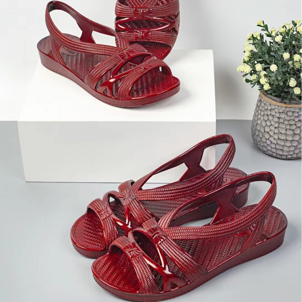 2024夏の新型魚の口の坂とサンダルの女性の柔らかい底の中で老年のサンダルのファッションの中年のお母さんの靴の女性