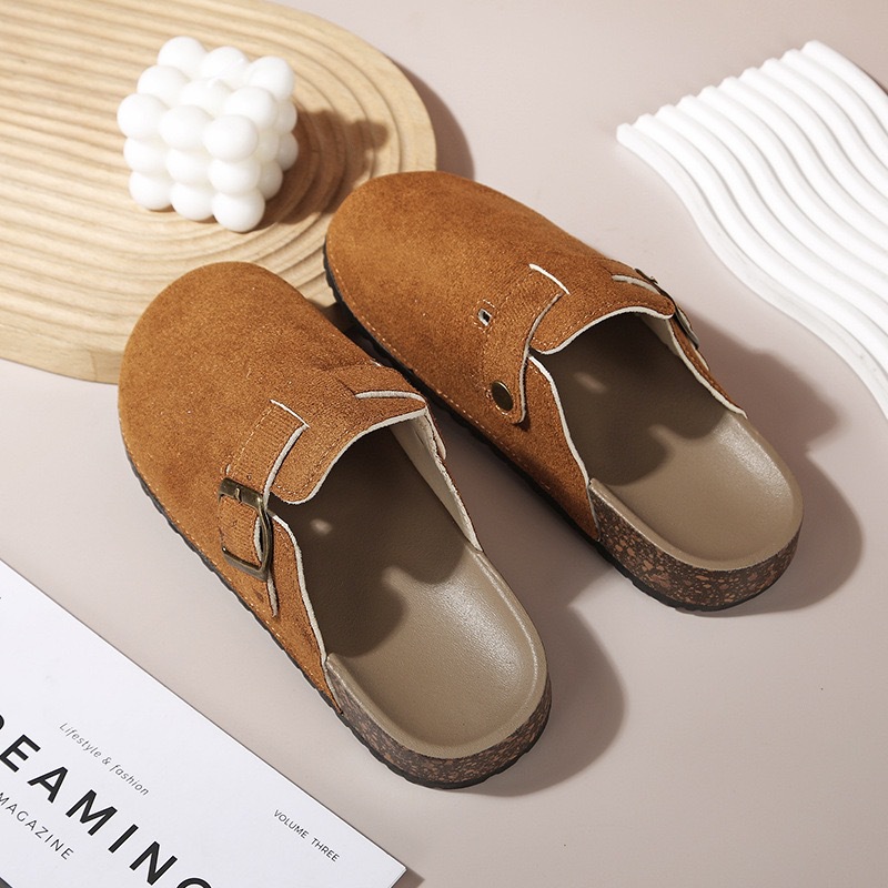 2025年春の新作女性用ビルケンシュトックシューズ、韓国風ハーフスリップ厚底ビルケンシュトックスリッポン、スリッポンつま先スリッパ