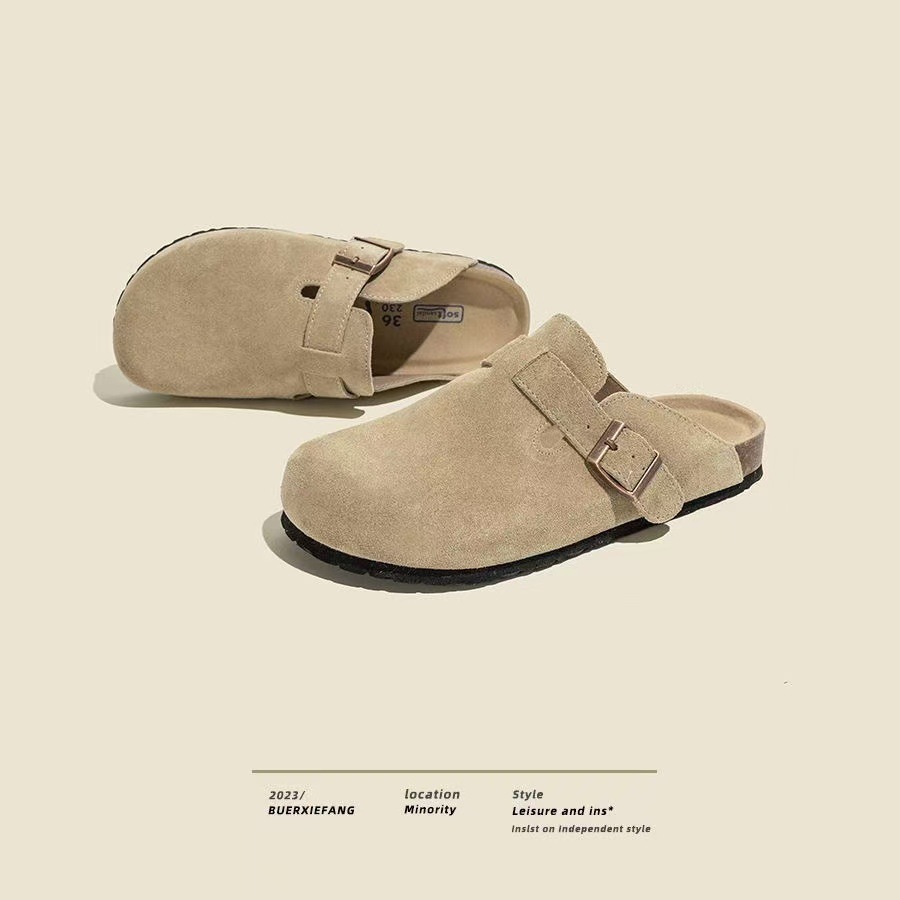 ベーケン靴の女性靴の頭の半分のスリッパの外は2024の新型の秋の春と秋の平底の厚い底の復古の怠け者の靴を着ます。