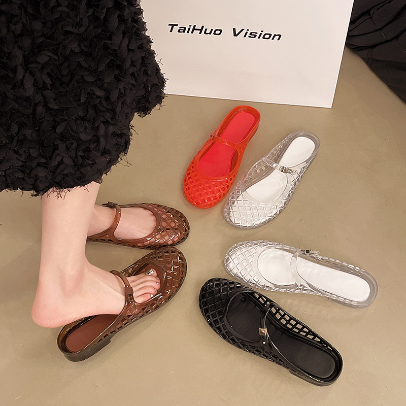 ファッショナブルな新しい透明な女性のサンダル夏の気質女性のニッチフラットシューズ包頭中空軽い高級女性の靴
