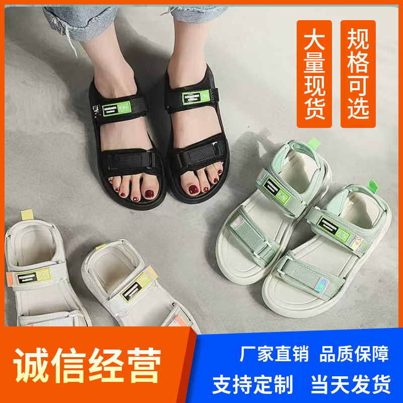 外国貿易のサンダルの女性の夏の2023新型の平底のレジャーの学生のビスケットの靴のマジックは平と運動のサンダルの潮を貼ります。
