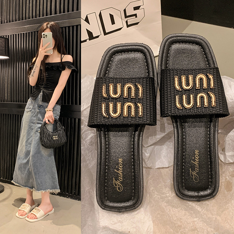 2025新型のフラットスリッパの女性は夏のファッション室の内外でネットの赤い砂浜を着ています。