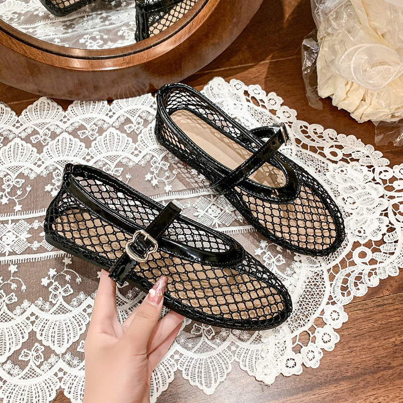 東南アジアで人気のクロスボーダーラウンドトゥメッシュ通気性サンダル、浅い口、平底、大きいサイズ、カジュアル、韓国風、快適