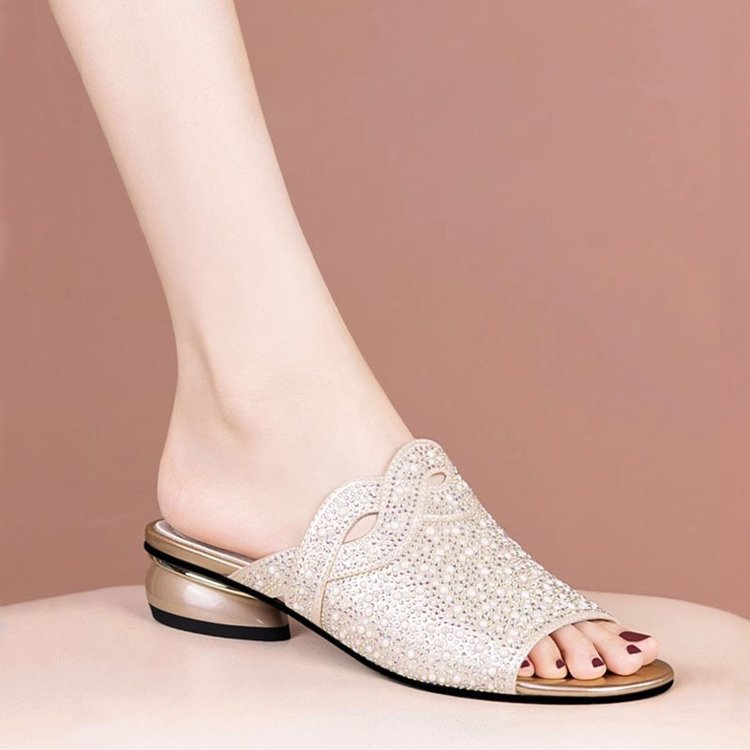 2025 新しいスリッパ女性の厚底フラットスリッパ女性の夏のファッションラインストーン多用途滑り止めソフト底