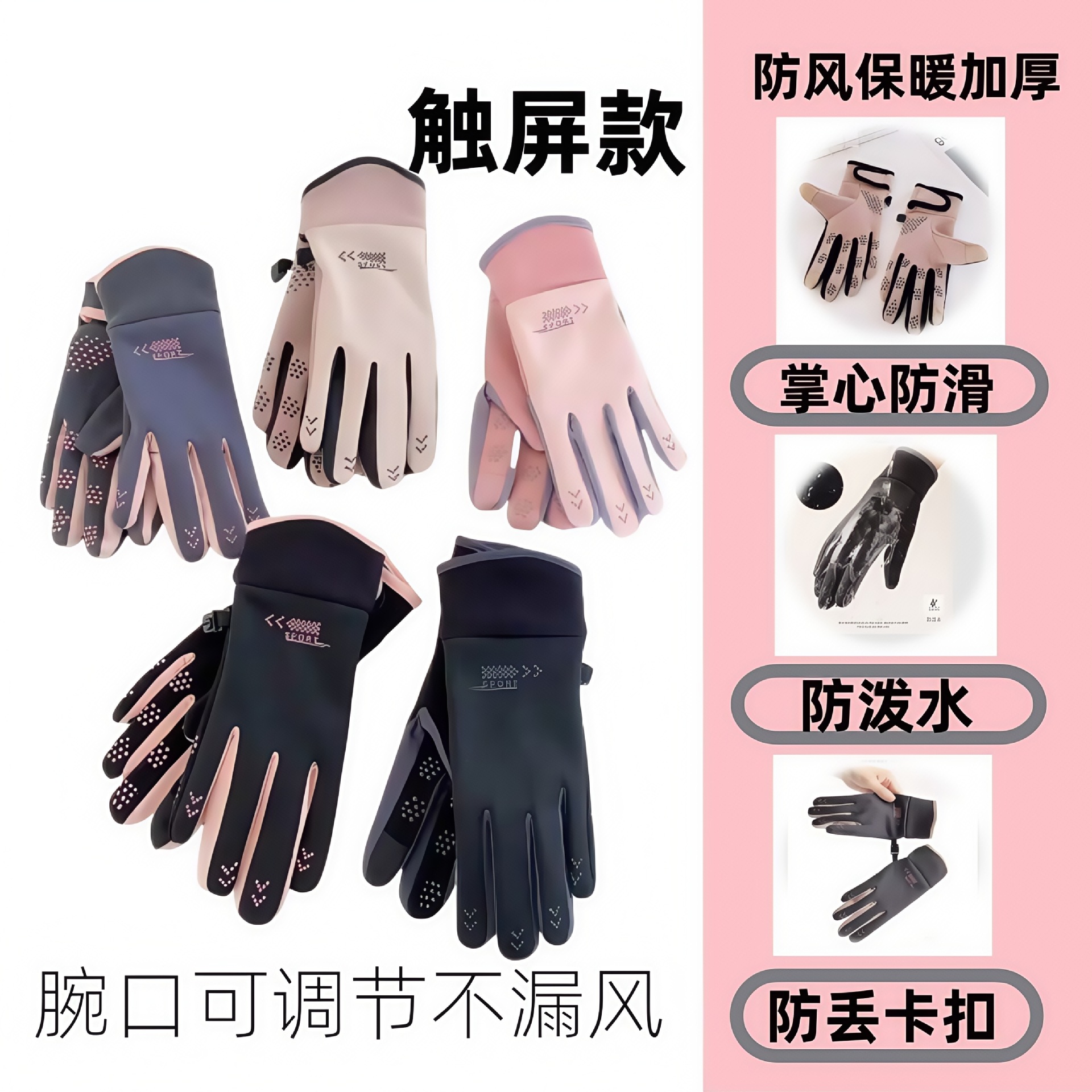 男性女性タッチスクリーン手袋冬防寒防風ジッパーベルベット滑り止めシリコン手袋アウトドア登山自転車