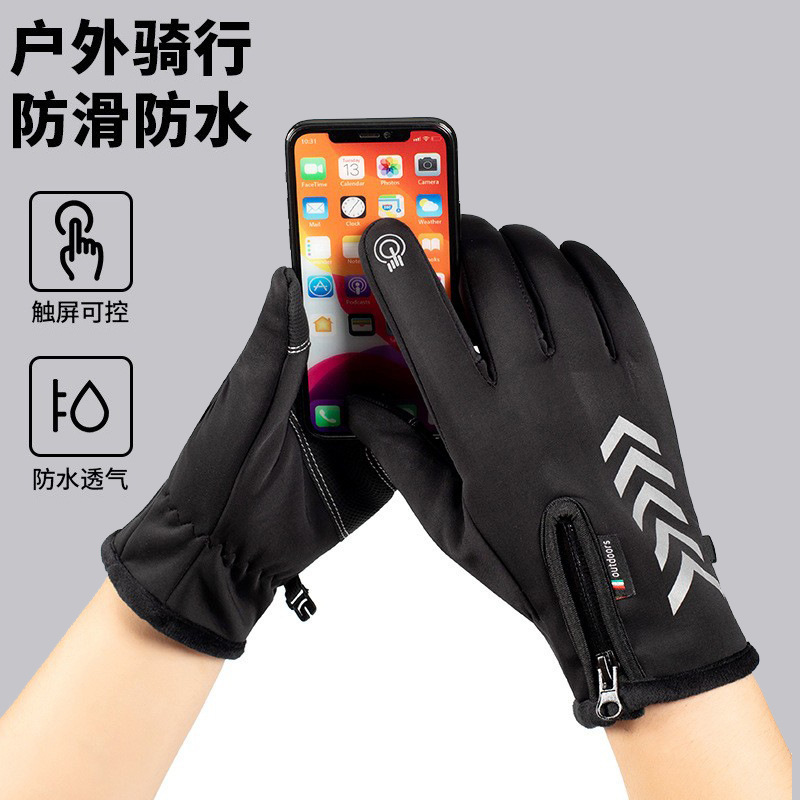 自転車に乗る手袋は全部指でタッチパネルの屋外防風男女のファスナーを指します。