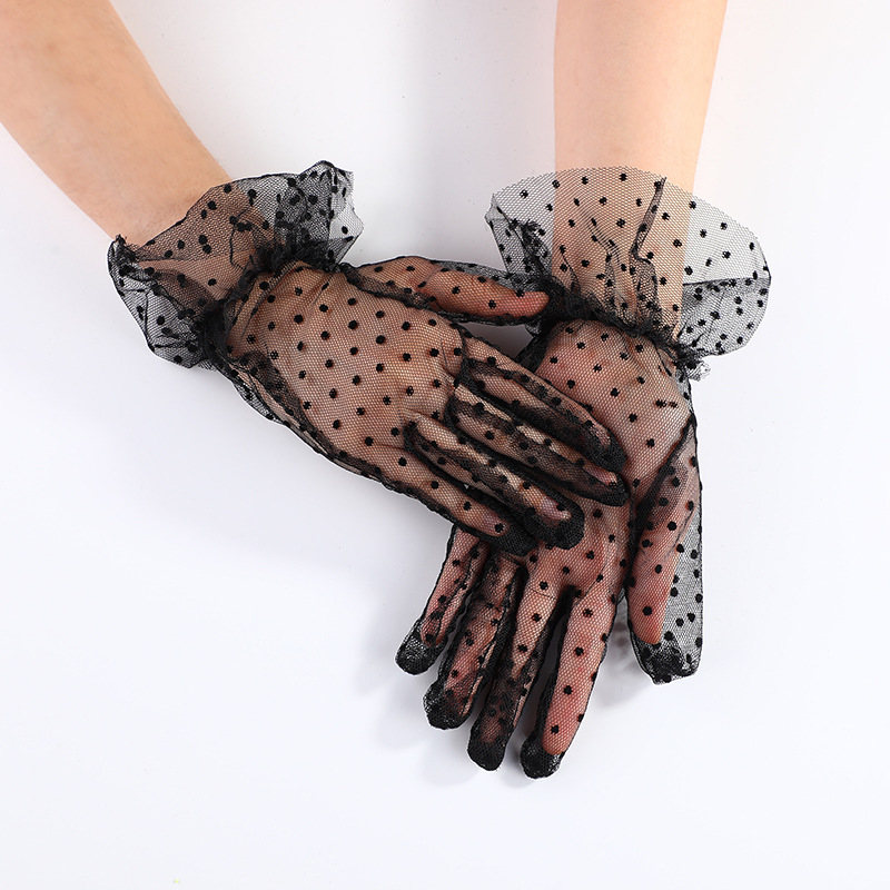 性感黑色圆点短款蕾丝花边透气骑行防晒手套女婚礼新娘结婚手套