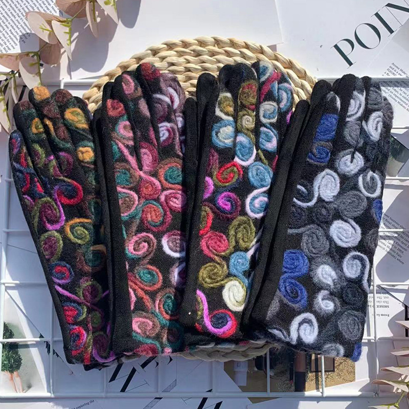 スエード保温手袋ファッション刺繍毛糸分指手袋アウトドアスポーツ手袋卸売り