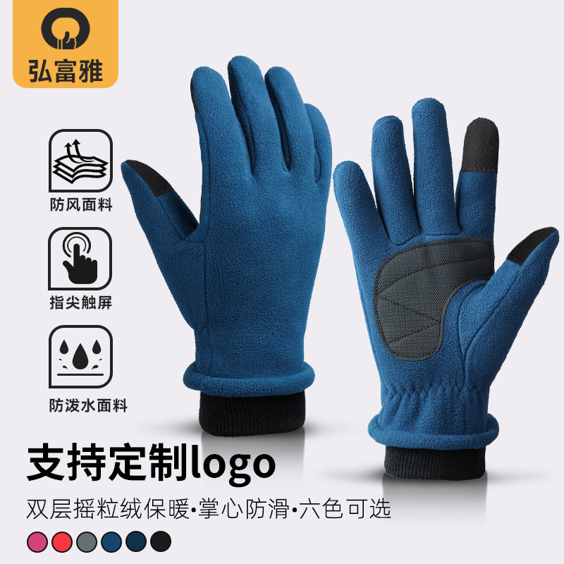 保温手袋の新型ベルベットは北極絨毛の冬のタッチパネルのニット手袋の男性の屋外二重防風を厚くした
