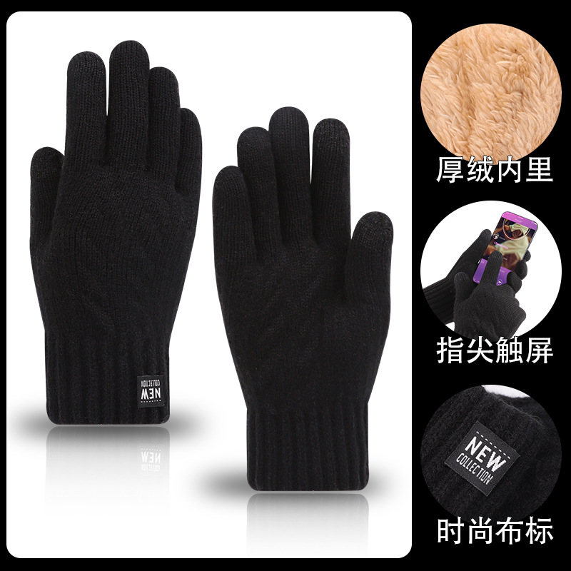 手袋冬の二重ベルベットは男女防寒防風保温ニットタッチスクリーン毛糸騎手手袋を厚くした