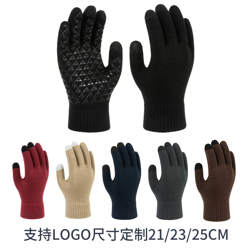 男性と女性向けのクロスボーダー専用ニットタッチスクリーン手袋、冬用ベルベットの厚みのある暖かい滑り止め手袋、メーカー承認