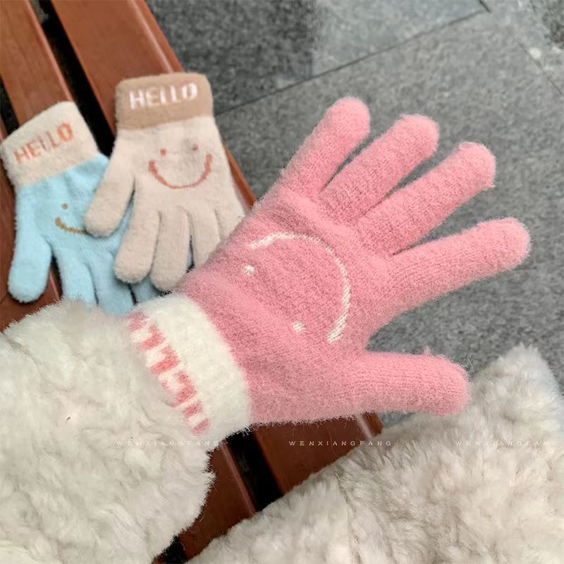 現物工場価格直売秋冬の中にベルベットをつけてファッション的な屋外で防寒学生のニット保温手袋工場に乗る
