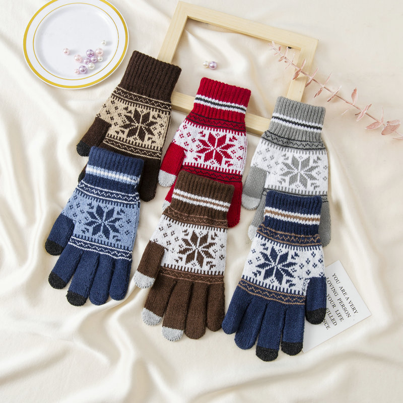 2025 新しいニットウールタッチスクリーン手袋冬暖かく防寒性のある屋外サイクリングスノーフレーク韓国語版男性と女性用