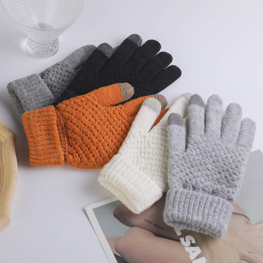 冬の新作、ふわふわで伸縮性のあるニット手袋。女子学生向け、スポーツ、アウトドア、防寒、タッチスクリーン対応、サイクリング、保温手袋。