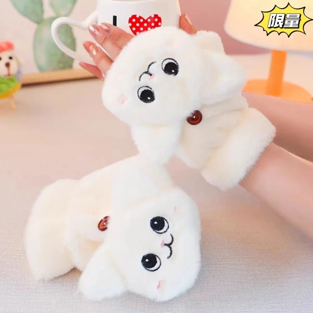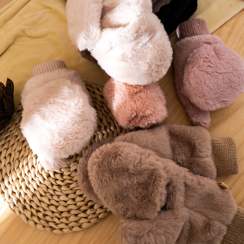 柔らかいモチモチの毛の半分の指の手袋の女性のベルベットの保温の秋冬の袖はかわいいウサギの毛の日系の長袖の指の手袋に似せます。