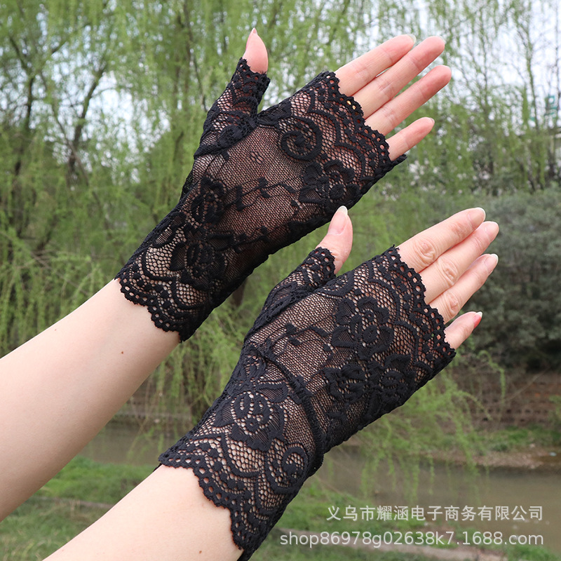女性用レース日焼け止め手袋夏ハーフフィンガー薄型指なしタッチスクリーンブラックメッシュハーフカット卸売セクシーパフォーマンス