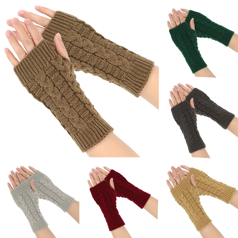 秋冬保温露指手袋屋外騎行短手袋毛糸偽袖クロスボーダー男女ニット毛糸手袋
