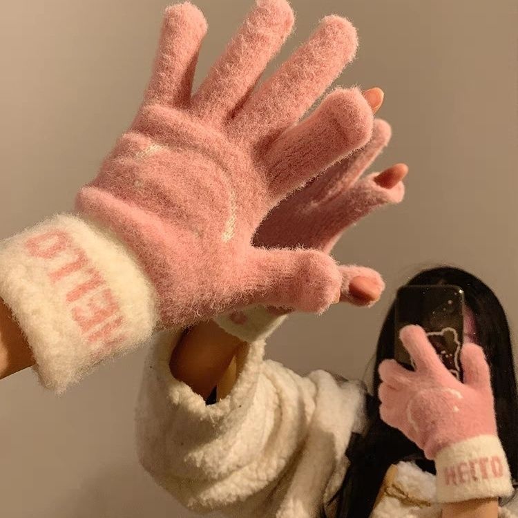 新しい女性用グローブ、大きな子供用、かわいいウールニット、筆記やスマホ操作に便利、秋冬用、漫画柄、学生向け、多用途
