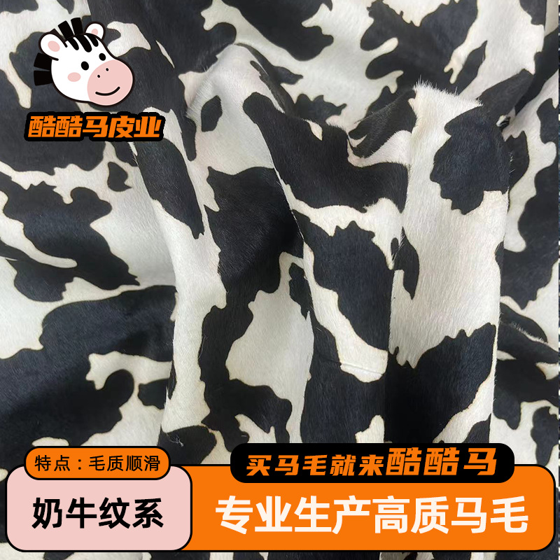 現物白黒斑紋馬皮材黒白毛皮一体二色革馬毛靴バッグプリント本革真毛