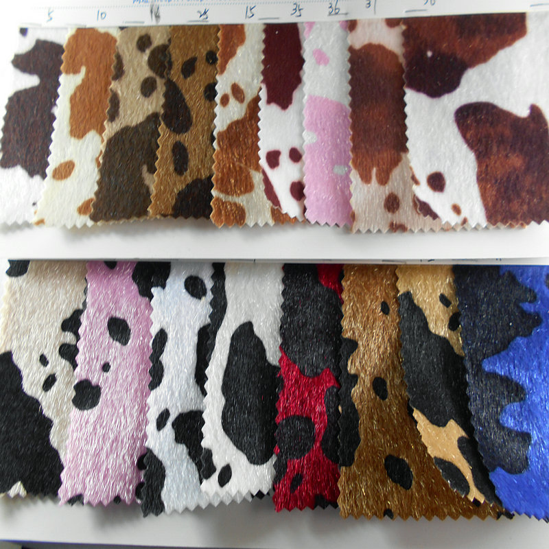 現品の乳牛の紋様の馬毛の馬毛のプリントの明るい光の馬毛のオフセットの馬毛の乳牛の紋様の包みの靴の材料の生地