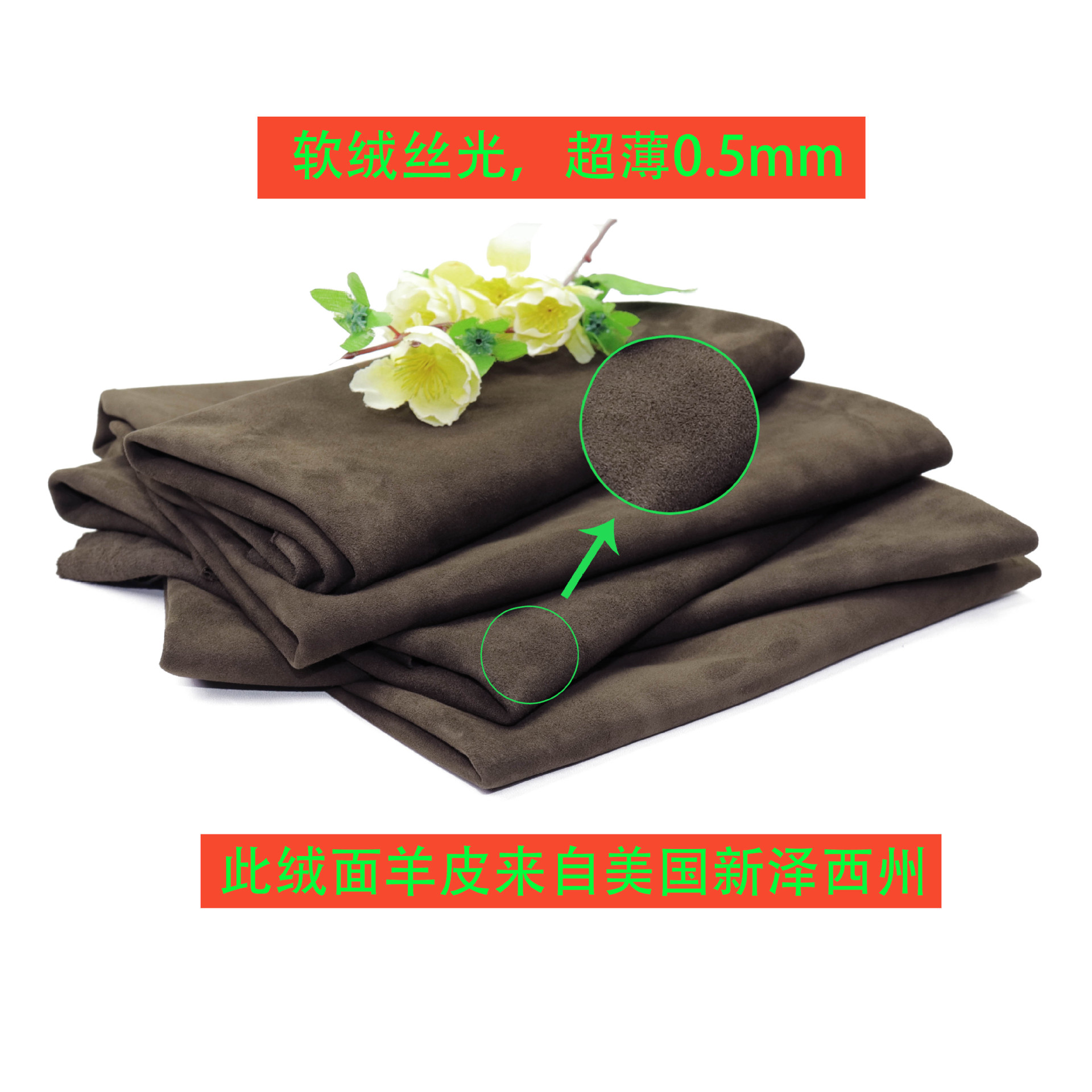 促销 超薄反绒绵羊皮 绒面羊猄 丝光羊反绒 头层羊皮 咖啡色