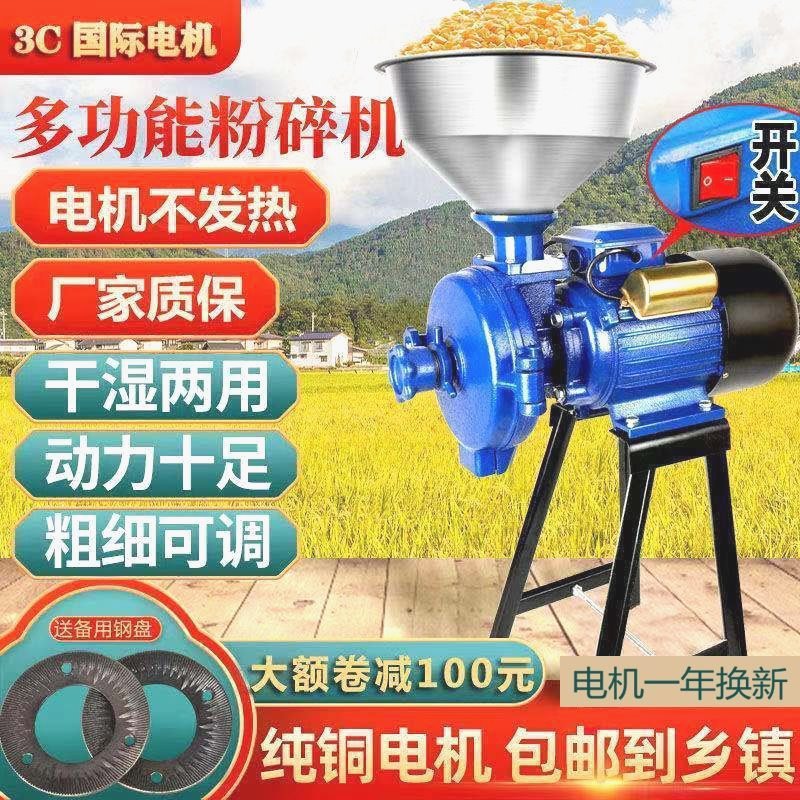 五穀雑穀粉砕機乾湿両用22トウモロコシ飼料家庭用打粉0v商用研磨機小型