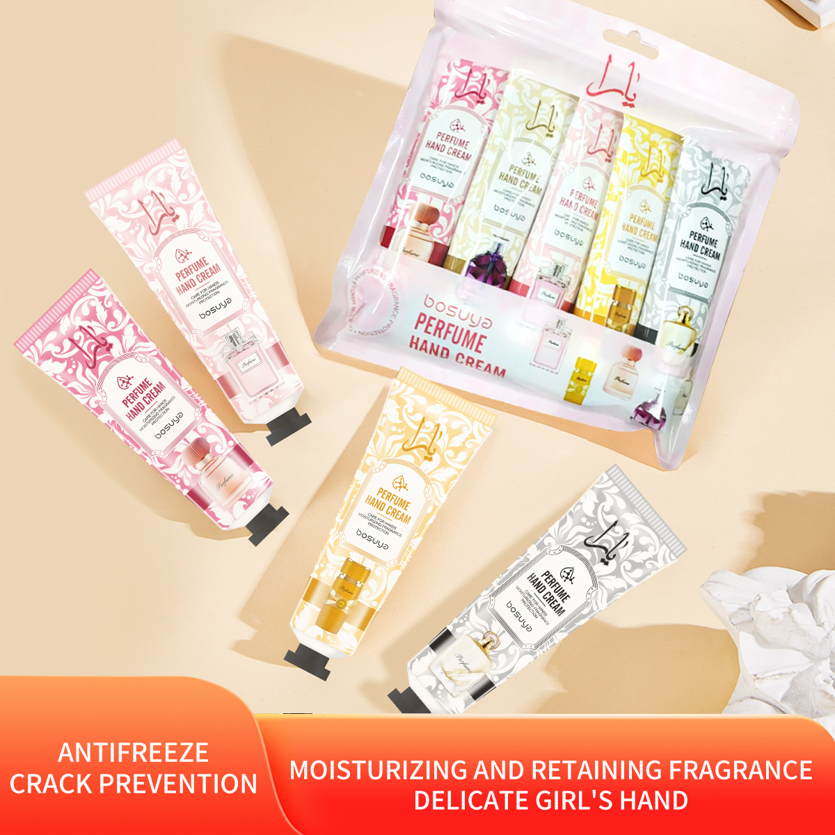 アマゾンの新型香水ハンドクリームセット保湿うるおい乾燥防止香水ハンドクリーム5本入り