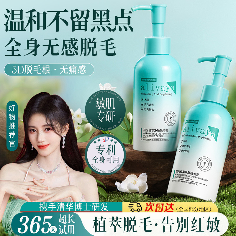Alivaya 脱毛クリームは黒ずみを残さず、脇毛、脚の毛、手の毛、全身に優しく女性にも使用できます。