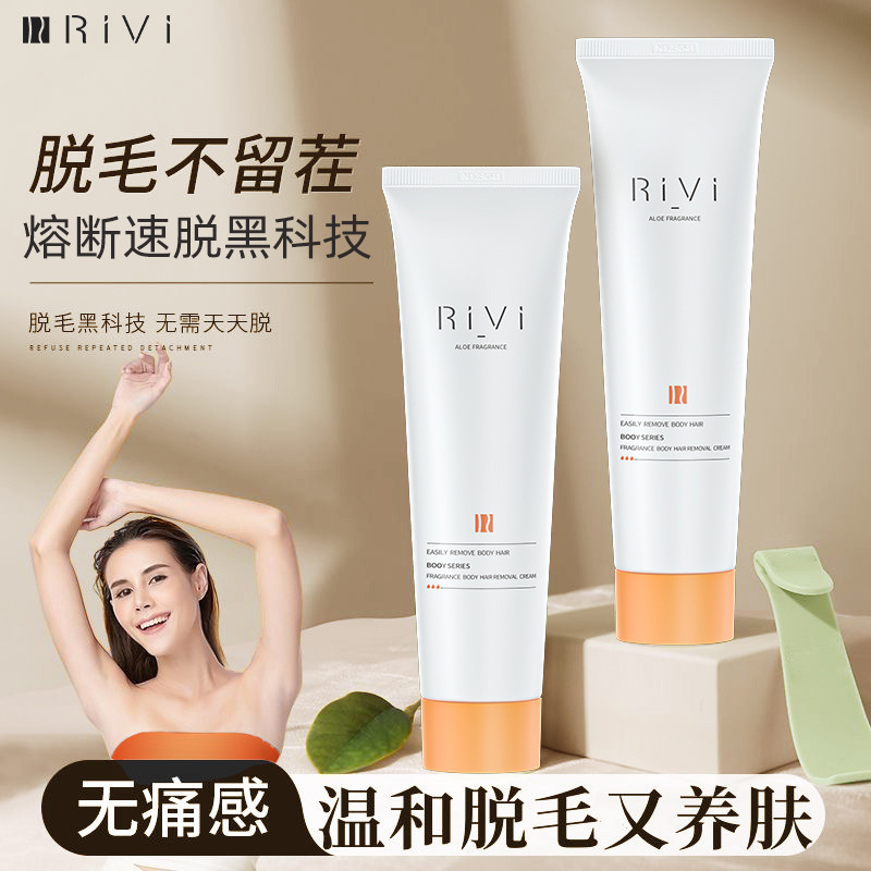 Rivi 脱毛クリームは、男性と女性向けに優しく刺激が少なく、半分保湿して黒ずみを残さず脚と脇の毛を除去します。