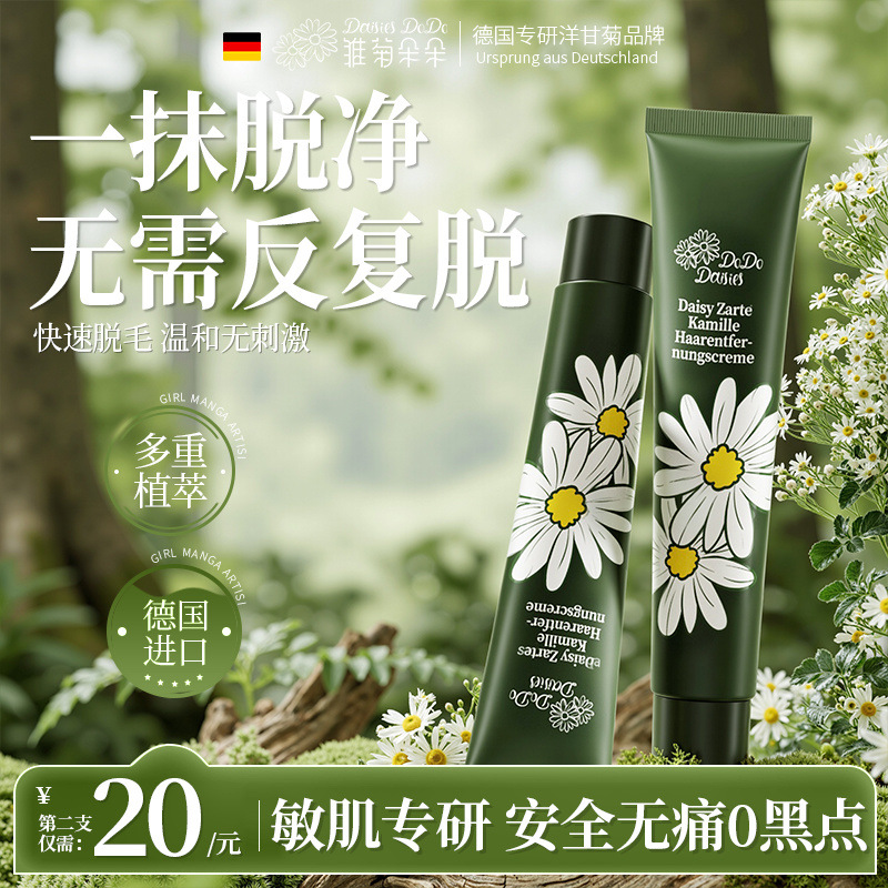 ドイツ配合のDaisiesdodo脱毛クリームは、黒ずみを残さず、脚、脇、顔、陰部に優しく全身に使用できます。