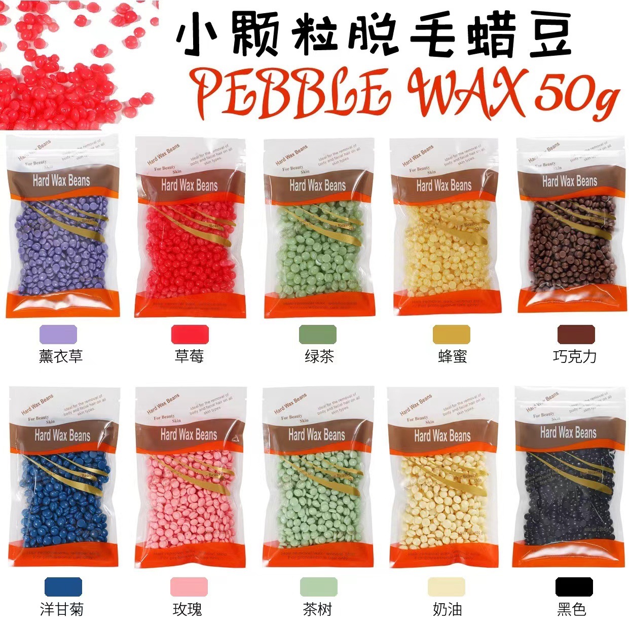 国境を越えた中性包装脱毛ワックス脱毛固形ワックスビーンズ脱毛蜜蝋ワックスセラピー粒50g蜜蝋ビーンズ卸売