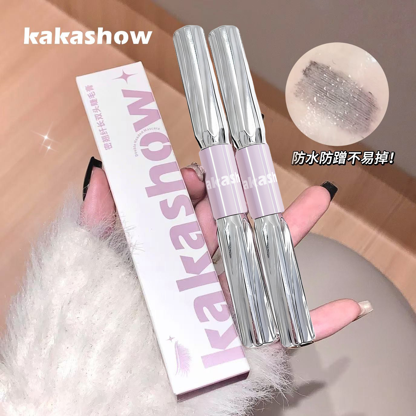 Kakashow密反り繊維長双頭マスカラは繊維長カール防水汗防止眼マスカラを持っています。