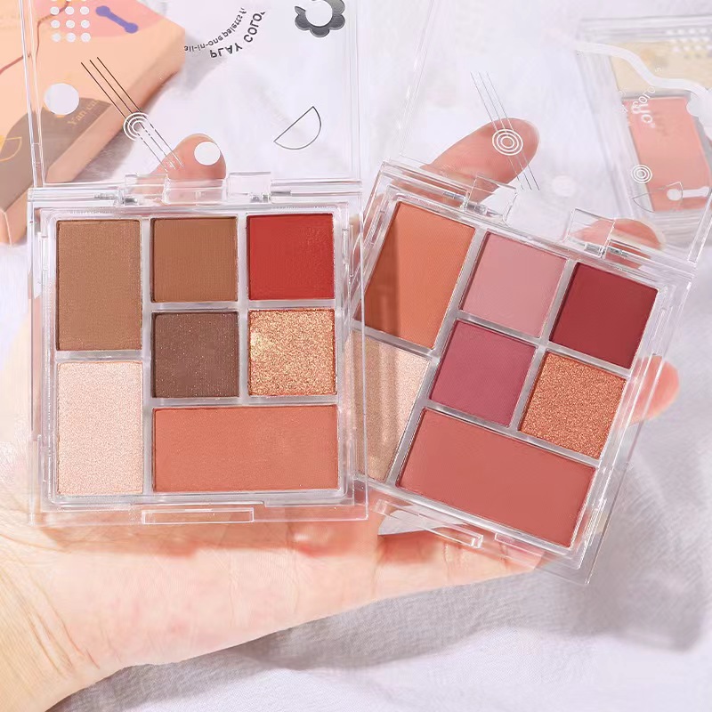 7色のアイシャドー盤の真珠の光がつやつやしています。