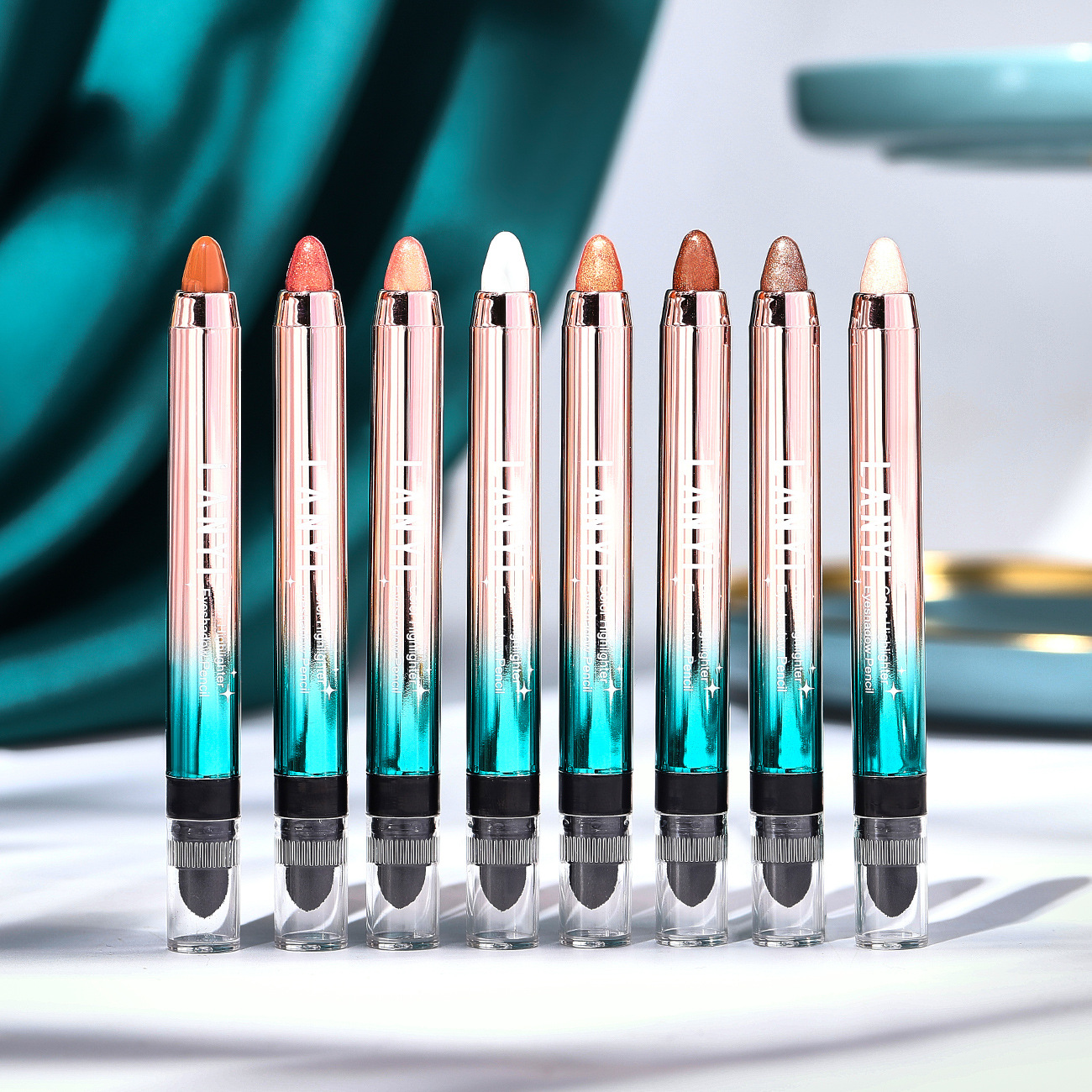 カラフルなハイグロスアイシャドウペン、ワンタッチで真珠光沢のある細かい輝きを形成し、輪郭を整え、明るくする双頭アイシャドウスティック