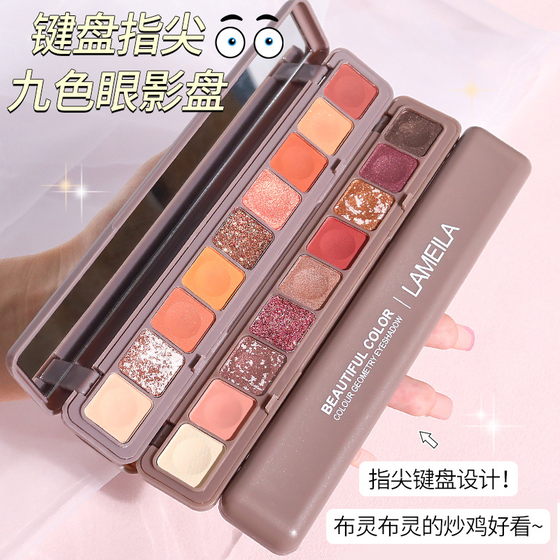 キーボードの指先の9色のアイシャドーのディスクのつや消しの真珠の光沢の切れのフラッシュのピンクの国産品の平価の学生の怠け者のアイシャドーの大きい地色