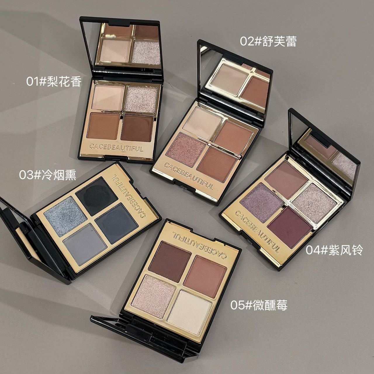 七巧板型アイシャドウパレット セメントアースカラー 4色チーク ハイライト コントゥアリング グリーン 中国語・英語対応 貿易・越境