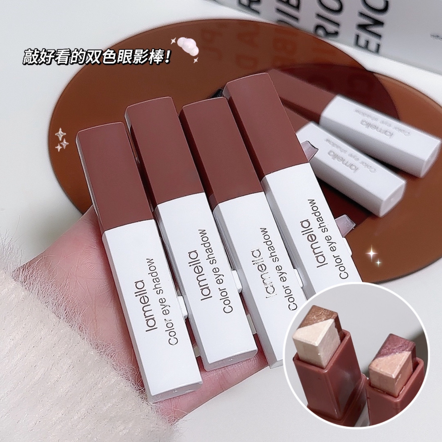 SAM SUGARハイライトのアイシャドーの真珠の光の細い閃光の修容は2頭のアイシャドーの棒を明るくして一つの形をして国境を越えます。