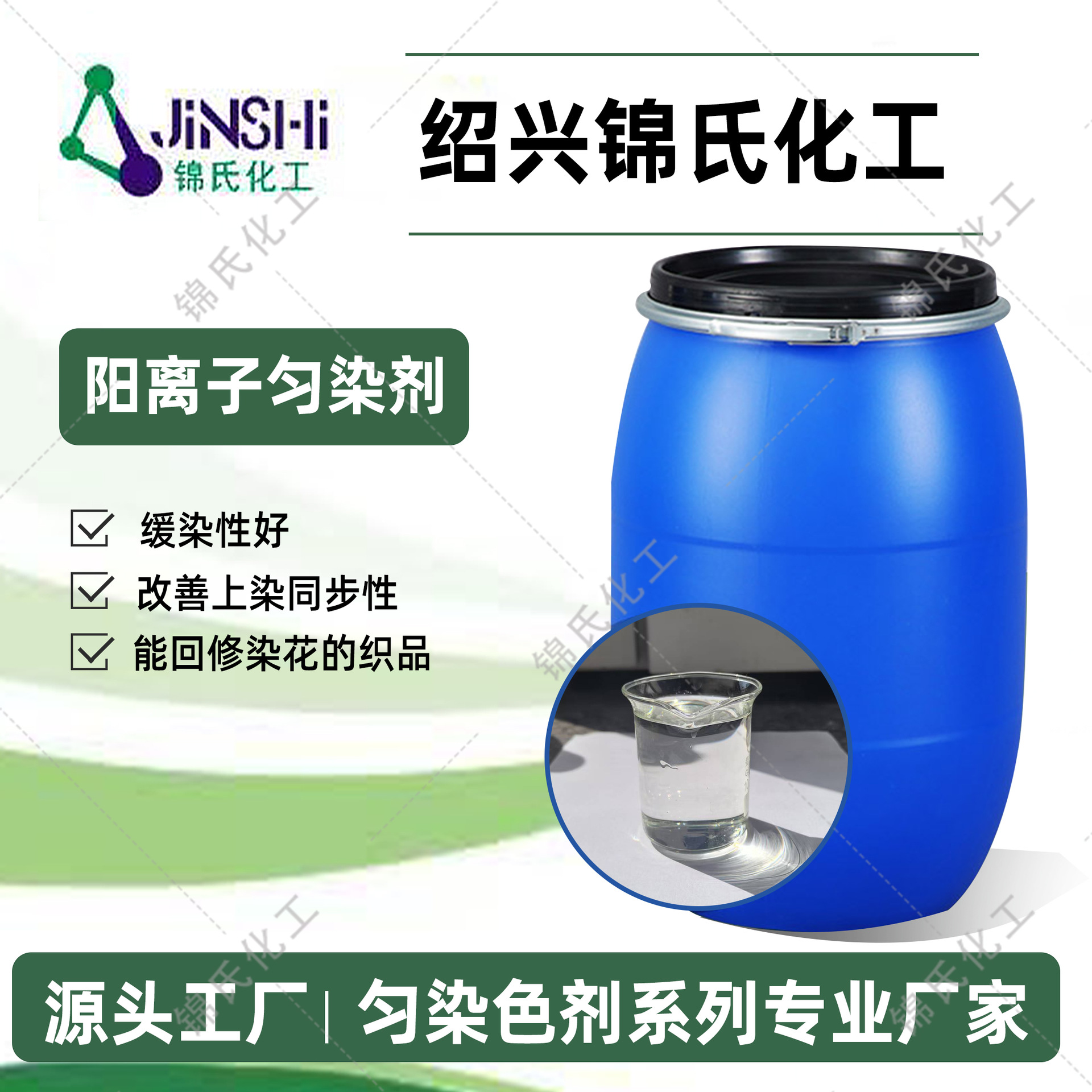 Jin's Chemical カチオン染料均一剤 アクリル繊維染料均一剤 1227 染料均一剤は同時に染色され、均一です。