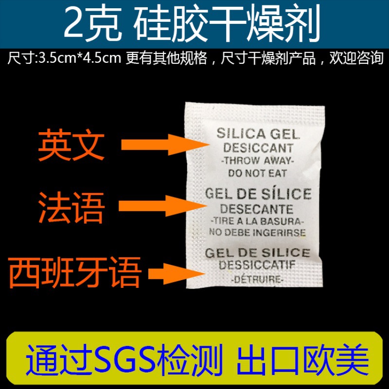 2グラムシリカゲル乾燥剤英語フランス語スペイン語乾燥剤輸出乾燥剤dmfなし
