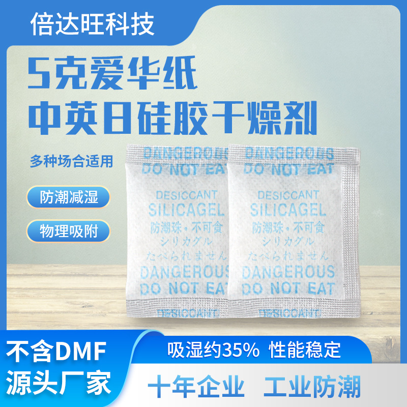 シリカゲル乾燥剤 5 グラム愛華紙包装中国語、英語、日本語の三か国語食品グレード CPP フィルム無色透明粒子シリカゲル