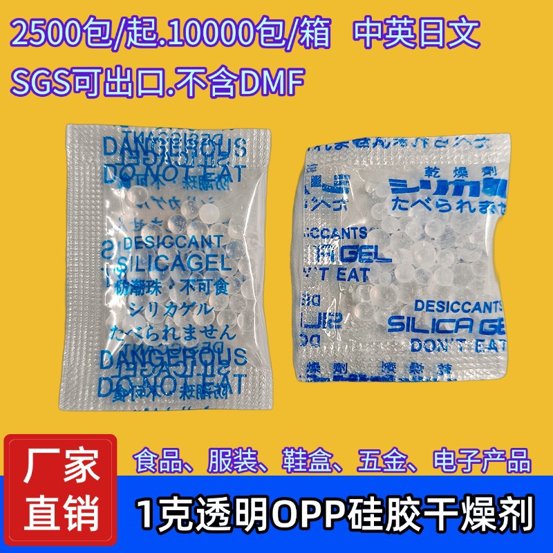 食品と医薬品 1g OPP シリカゲル乾燥剤透明小袋中国語、英語、日本語防湿ビーズ吸湿性環境保護輸出