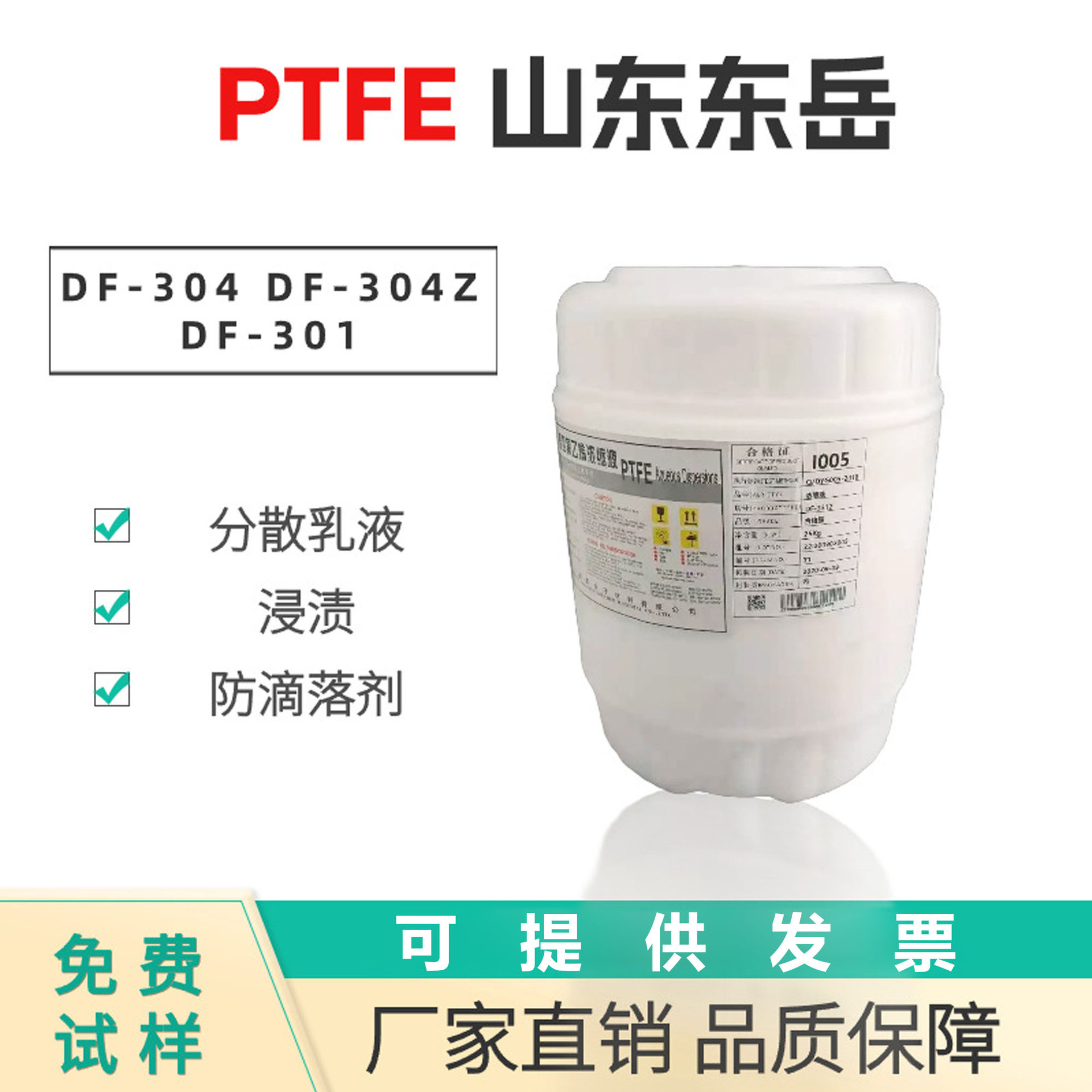 PTFE山東東岳DF-304DF-301浸透性防滴剤ポリテトラフルオロエチレン分散乳液耐摩耗性