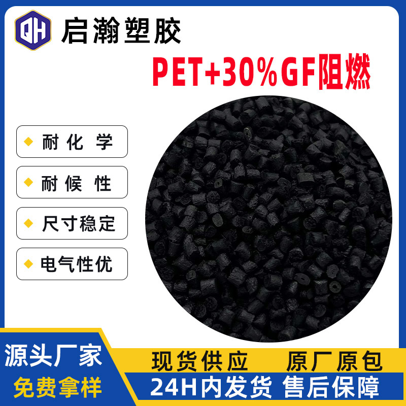 プラスチック改質PET黒色、繊維30%配合、難燃性V0、骨格強化、耐高温ポリエステルスライス強化PET顆粒